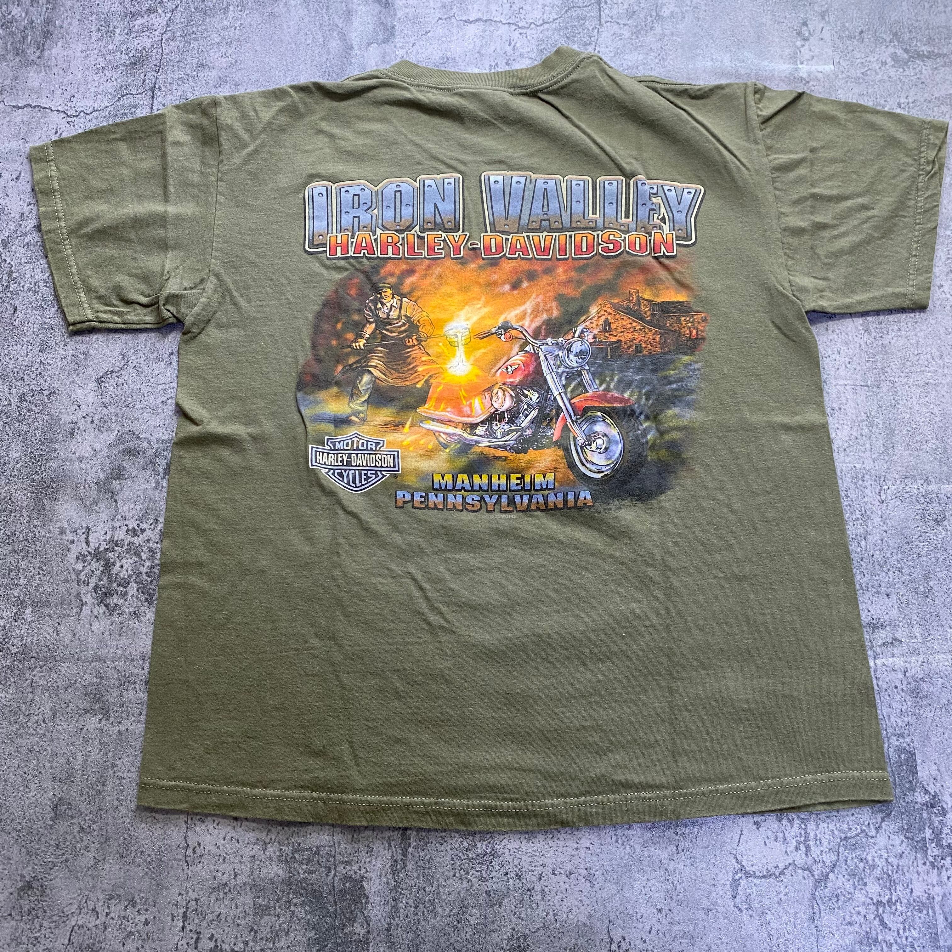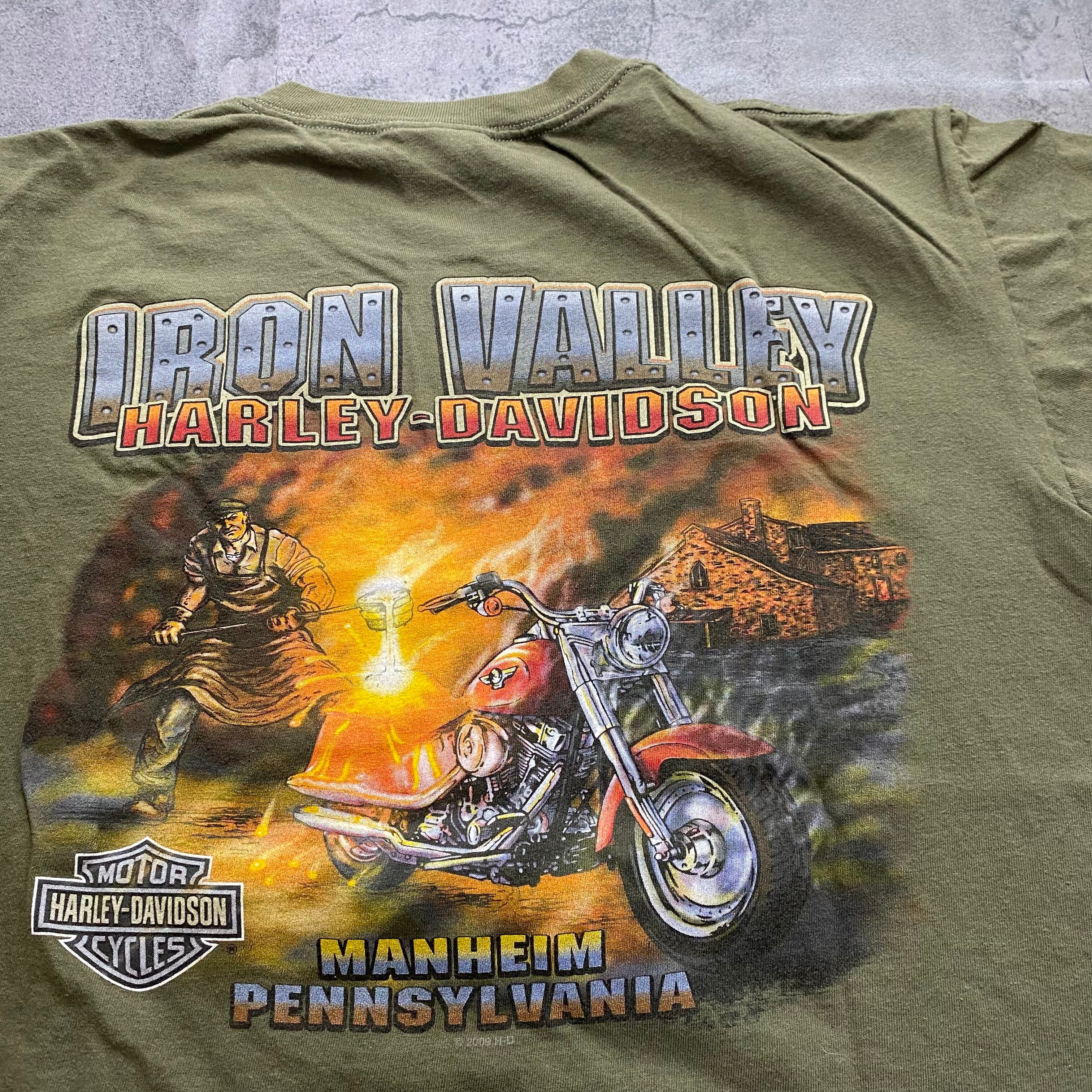 ハーレーダビッドソン tシャツ カーキ アニマルプリント バイク 古着