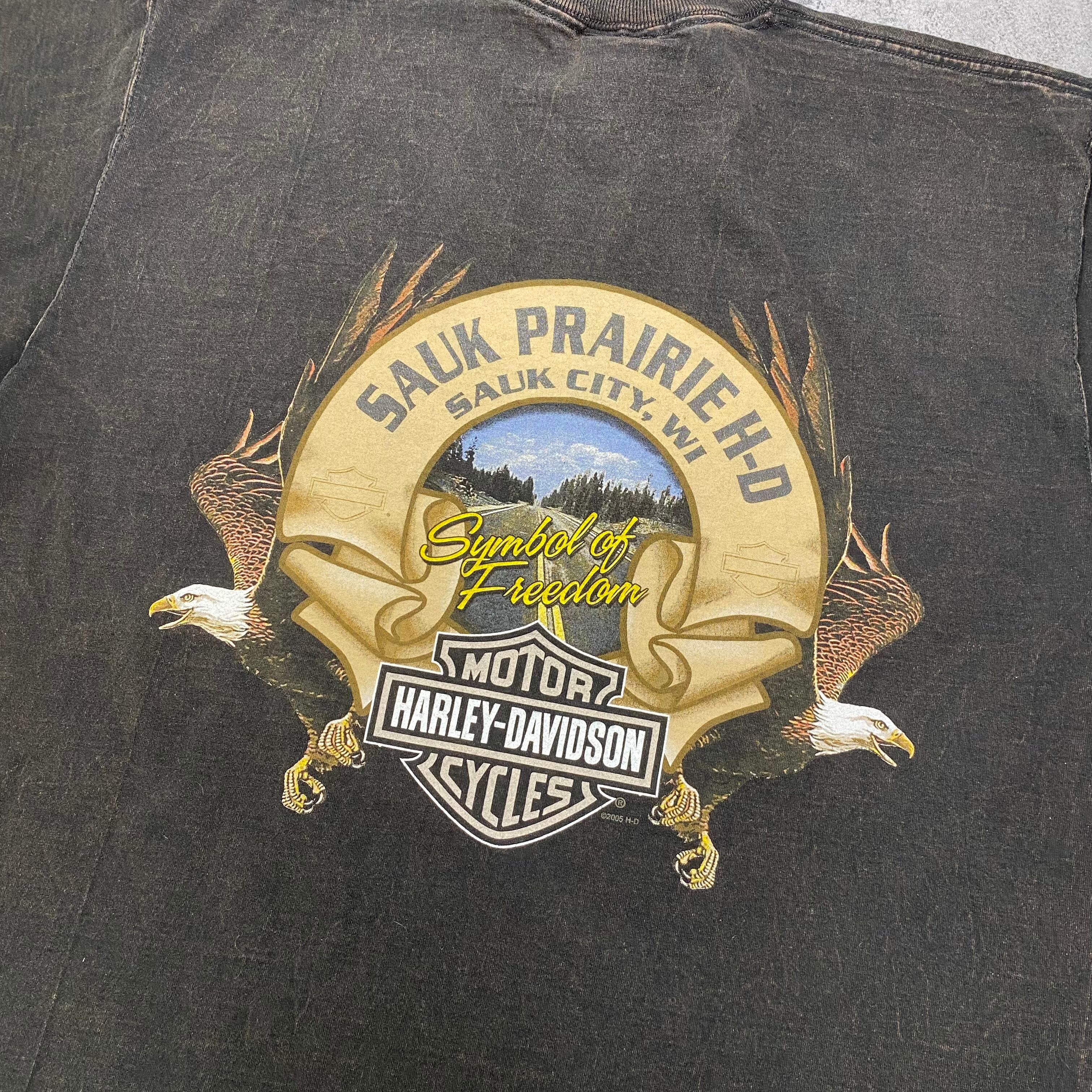 ハーレーダビッドソン 両面プリント 古着 黒 ブラック